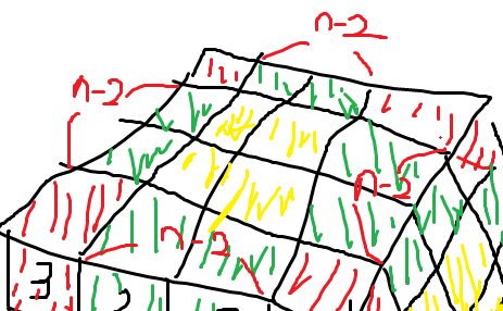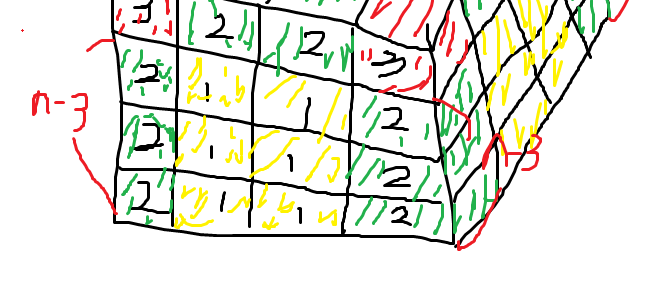 각 사이드 4세트가 있는데 한 세트는 (n-1)*(n-2) 이므로 4(n-1)(n-2)로 구할 수 있습니다.