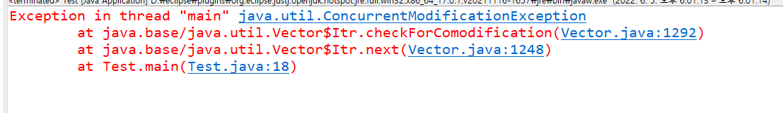 아래의 코드는 에러가 난다 iterator를 만들고 원본 컬렉션이 변경되었기 때문에