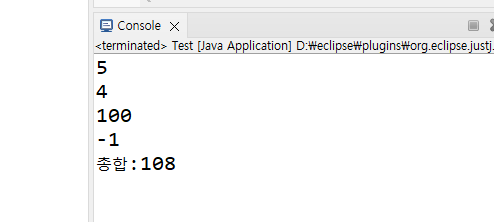 System.out.println("총합:"+sum);