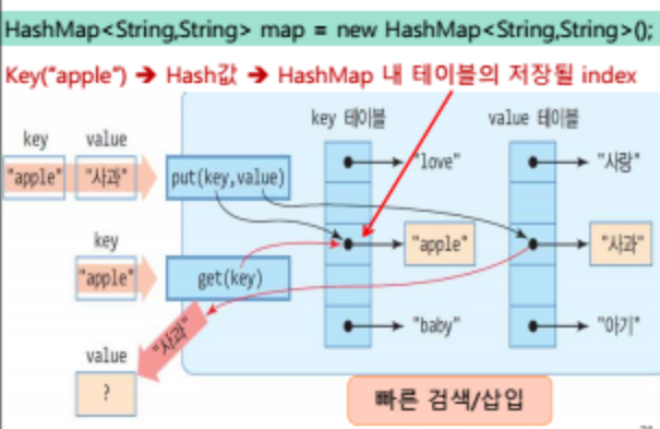 - '값'을 검색하기 위해서는 '키'가 필요하다.