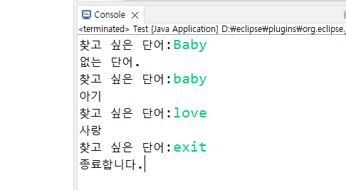 h.put("baby", "아기");