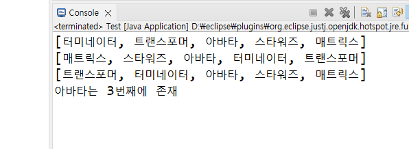 int index = Collections.binarySearch(myList,"아바타")+1;