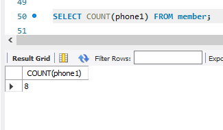 + 회원 테이블(member)에서 회원의 수 ( 모든 행의 개수를 셈 )