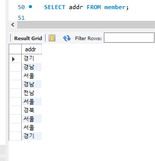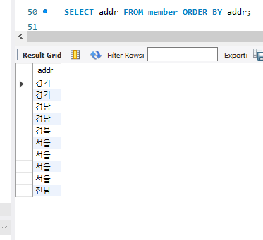 SELECT addr FROM member ORDER BY addr;