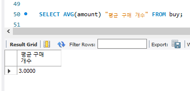 SELECT AVG(amount) "평균 구매 개수" FROM buy;