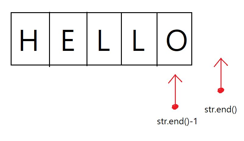 그래서 str.end()-1이 문자열 끝을 가리킴
