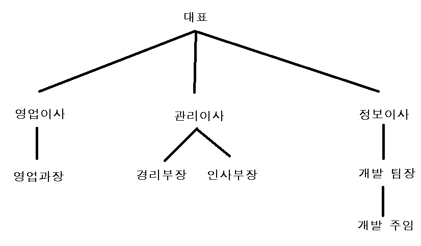 위의 조직도를 통해 하나의 테이블을 만듭니다.