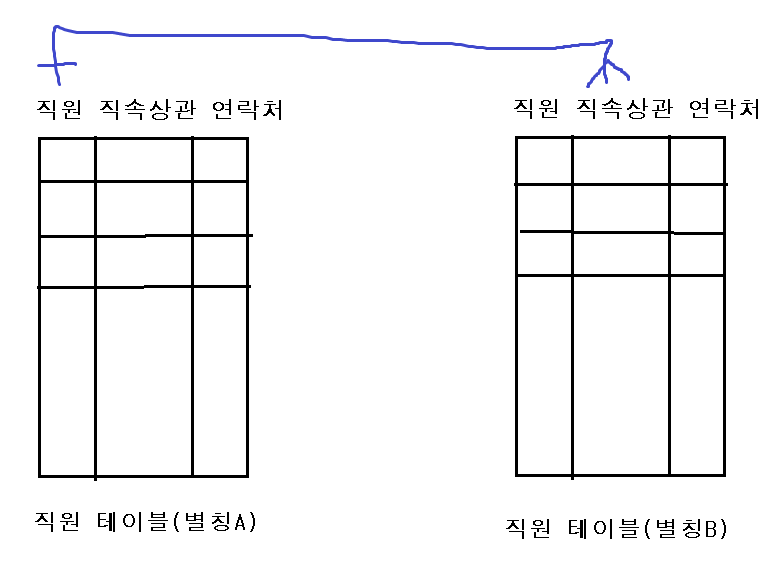 | 직원(EMP) - 기본키 | 직속 상관(MANAGER) | 사내 연락처 |