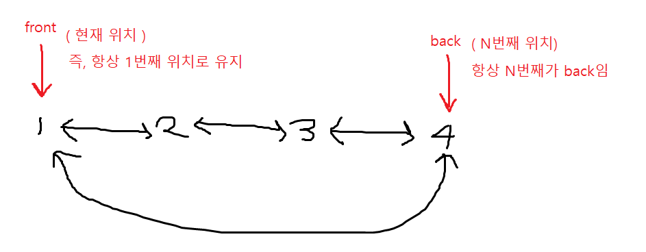 항상 back(맨뒤)가 1~N개중 N번째로 되게 연산을 진행하면 됩니다.