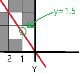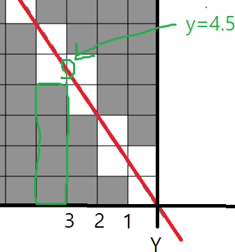 이렇게 대각선을 일차함수로 보고 푸는것이다.