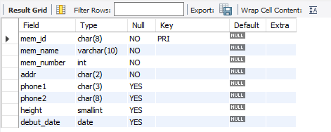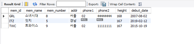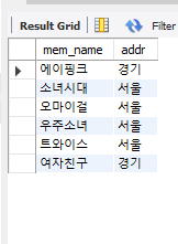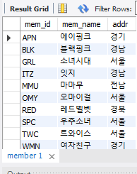 결국 mem_id, mem_name, addr 3개의 열을 가진 테이블로 봐도 된다는 것이다.