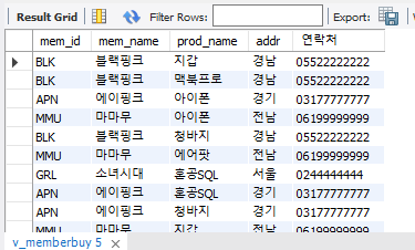 이제 v_memberbuy 뷰를 이용해 동일한 출력 결과를 얻는다.