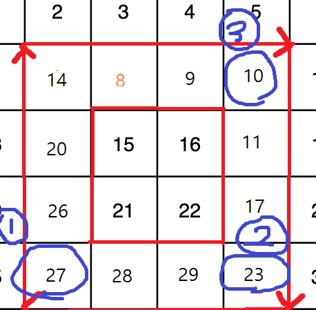 minNum은 테두리를 회전할 때 최솟값을 찾기 위해 갱신될 변수이다.