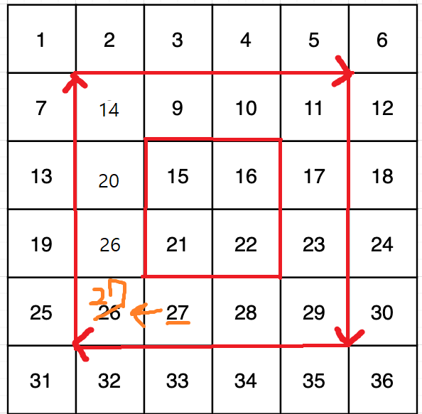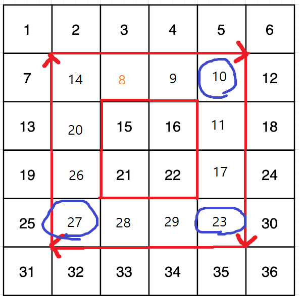 그냥 테두리를 따라 밀어 옮기게 구현하면 되는 문제이다.