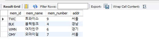 INSERT INTO member VALUES('TWC', '트와이스', 9, '서울');