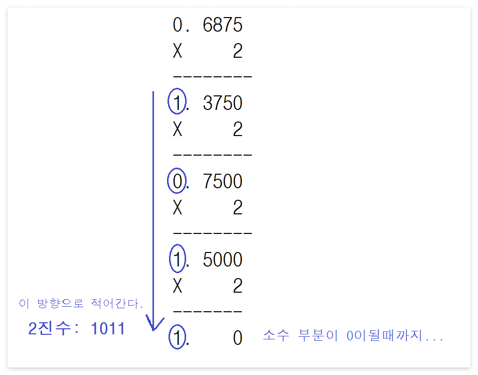 이제 소수 부분 0.6875을 2진수로 바꾸어보겠다.