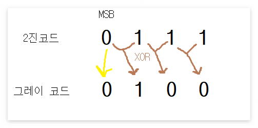그레이 코드의 MSB는 그대로 내려와 쓰고
