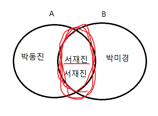 -> 교수의 학과번호와 학생들의 학과번호의 교집합을 하면 교수, 학생 모두 있는 학과번호만 남는다.