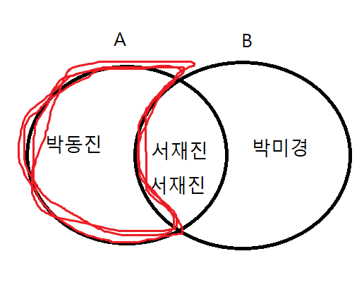 테이블 A, B에서 A테이블에 속하지만 B테이블에는 속하지 않는 행 집합을 결과로 반환