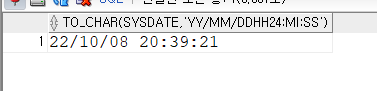 SELECT TO_CHAR(SYSDATE, 'YY/MM/DD HH24:MI:SS') "기본값",