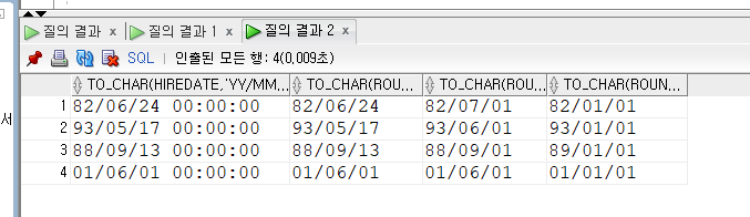 - 시간 정보를 생략하는 경우 ROUND, TRUNC 함수의 결과