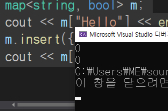 그래서 두번째 m["Hello"] 출력시 이미 map에 존재하여 삽입이 실패하여 false가 나온다