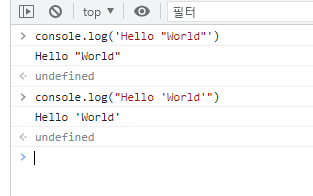 1. 작은 따옴표 또는 큰 따옴표로 표현한 문자열 안에 반대의 따옴표 찍기