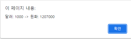 alert(`달러: ${dollar} -> 원화: ${dollar*1207}`)