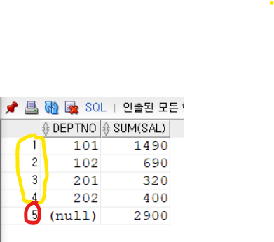 ROLLUP(deptno)의 결과