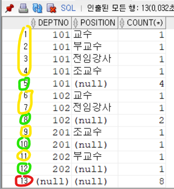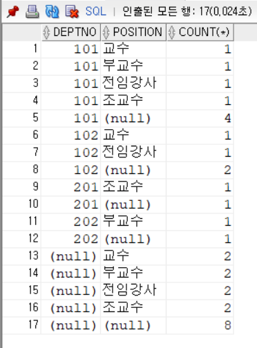 GROUP BY ROLLUP(deptno, position) ORDER BY deptno;