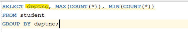 EX) 학과별 학생 수가 최대 또는 최소인 학과의 학생 수를 출력