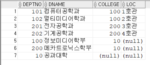 student 테이블의 데이터는 16개다. department의 데이터는 7개이다.