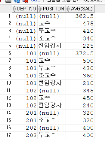 GROUP BY ROLLUP(deptno, grade) ORDER BY deptno;