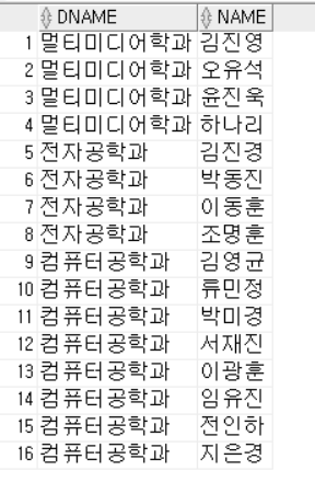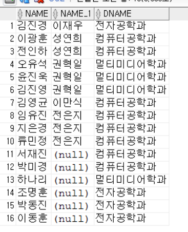 WHERE s.profno=p.profno(+) AND s.deptno=d.deptno;