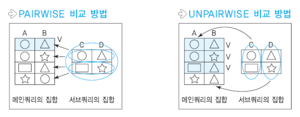 | PAIRWISE | 칼럼을 쌍으로 묶어서 동시에 비교 |