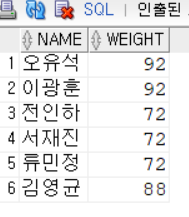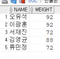 그래서 각 deptno 그룹 별로 최소 weight의 결과가 한행만 나오는게 아니라 '=' 비교가 불가능하다.