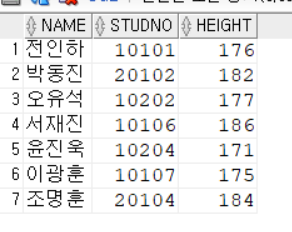 7. 학과별 평균 키보다 큰 학생의 이름, 학번, 키 출력