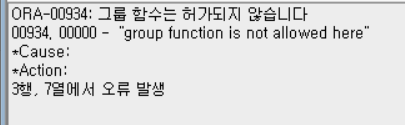 WHERE 절에 그룹함수를 사용하면 안된다.