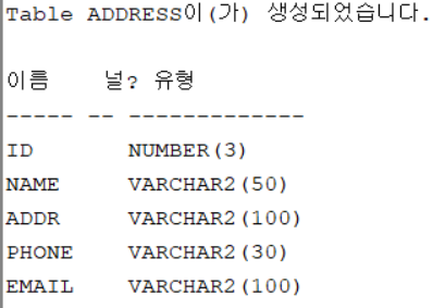 -- 주소록 테이블에서 phone 칼럼의 크기를 50으로 증가