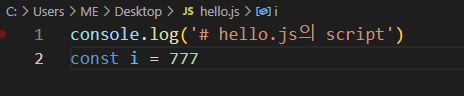 동일한 폴더에 hello.js를 만들어 코드를 입력했다.