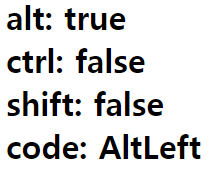output += `alt: ${event.altKey}<br>`