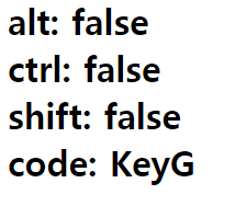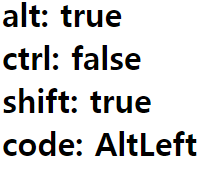 output += `shift: ${event.shiftKey}<br>`