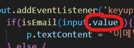input이 text type이라 그냥 if(isEmail(intput))하면 될 줄 알았는데
