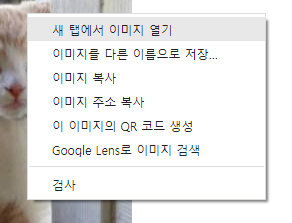 웹 브라우저에서 이미지를 우클릭하면 복사와 같은 메뉴가 나타난다.