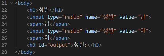 라디오 버튼을 하나만 선택 가능하게 하려면 name 속성을 동일하게 입력해 그룹으로 만들면 된다.