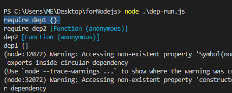 require('./dep1')이 실행되고, dept1.js에서는 require('./dep2')가 실행되는데 그럼 또 require('./dep1')이 실행되고
