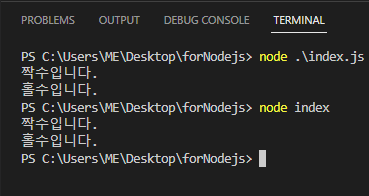 윈도에서는 명령 프롬프트에서 node를 입력하고, VS Code에서는 터미널을 통해 실행 가능하다.