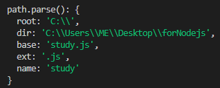 실행 결과 => path.format(): C:\Users\ME\Desktop\forNodejs\study.js