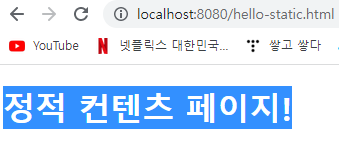 스프링 부트는 기본적으로 /static 폴더에서 정적 컨텐츠를 가져온다.