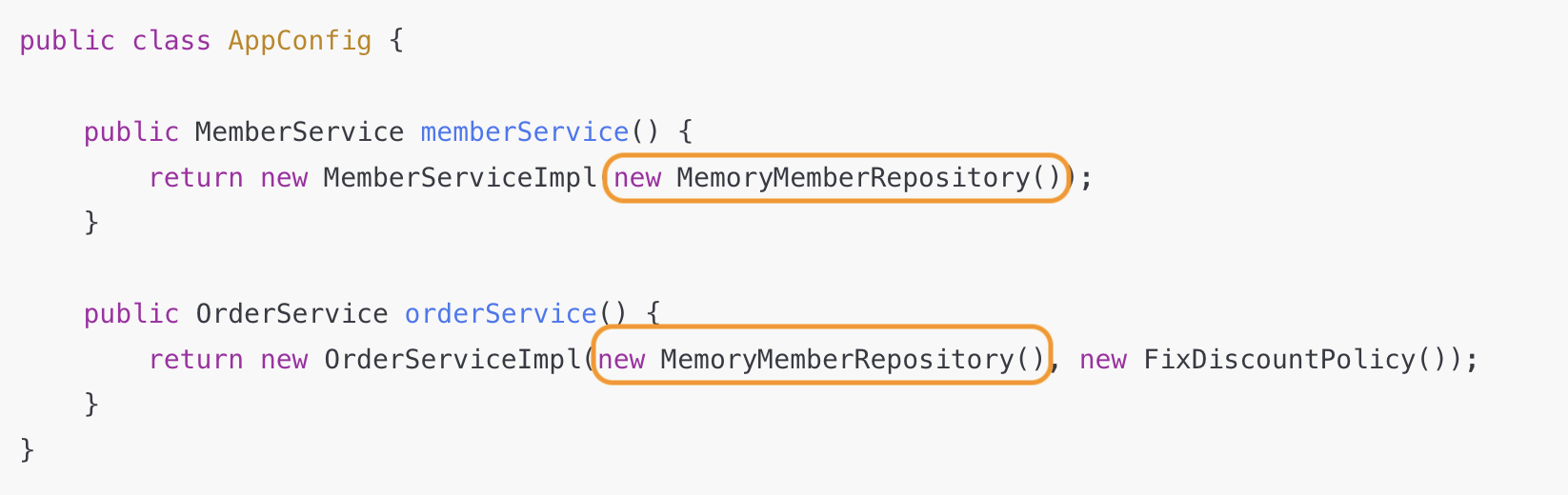 return new OrderServiceImpl(new MemoryMemberRepository(), new FixDiscountPolicy());
